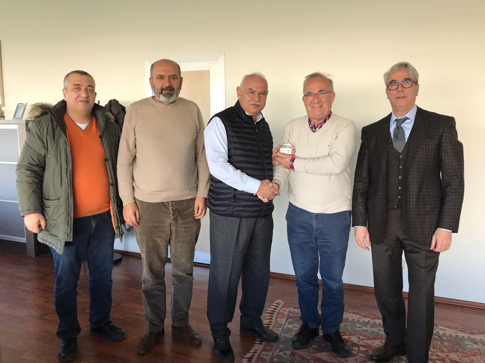 Özdoku Tekstil ve Orego Ambalaj firmaları Yönetim Kurulu Başkanı Sn.Rasim Karaarslan' ı, San-Der Başkanımız Sn.Mehmet Kocasakal ile Başkan Yardımcımız Sn.Halit Özer, Yönetim Kurulu Üyelerimiz Sn.Mustafa Ateşoğlu ve Sn.Deniz Kaya ile makamında ziyaret edip, okula yapmış oldukları bağış için hazırlattığımız plaketi takdim ettik.
